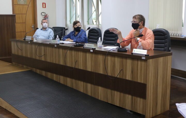 As comissões permanentes da Câmara de Vereadores reuniram-se na manhã desta segunda-feira (19) para deliberar sobre matérias que tramitam na casa. A comissão de Legislação, Justiça e Redação Final, a comissão de Finanças e Orçamento e a Comissão de Obras e Serviços públicos trataram de pautas em comum analisando dois Projetos de Lei (PL) do Poder Executivo. Estiveram em discussão o PL nº004/21 que visa adequar a tabela de comércio eventual ou ambulante e o PL nº 006/21 que altera dispositivos do Código Tributário Municipal com fins a prever a isenção proporcional de IPTU e adequação dos critérios de cálculo da taxa de serviços urbanos incidentes sobre a coleta de lixo.